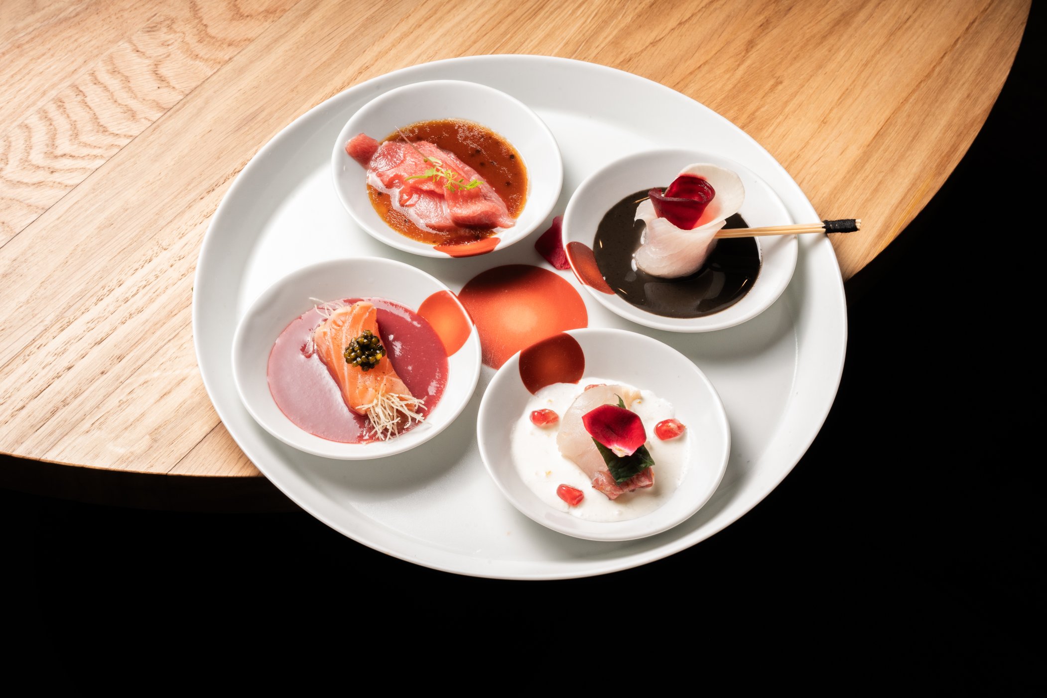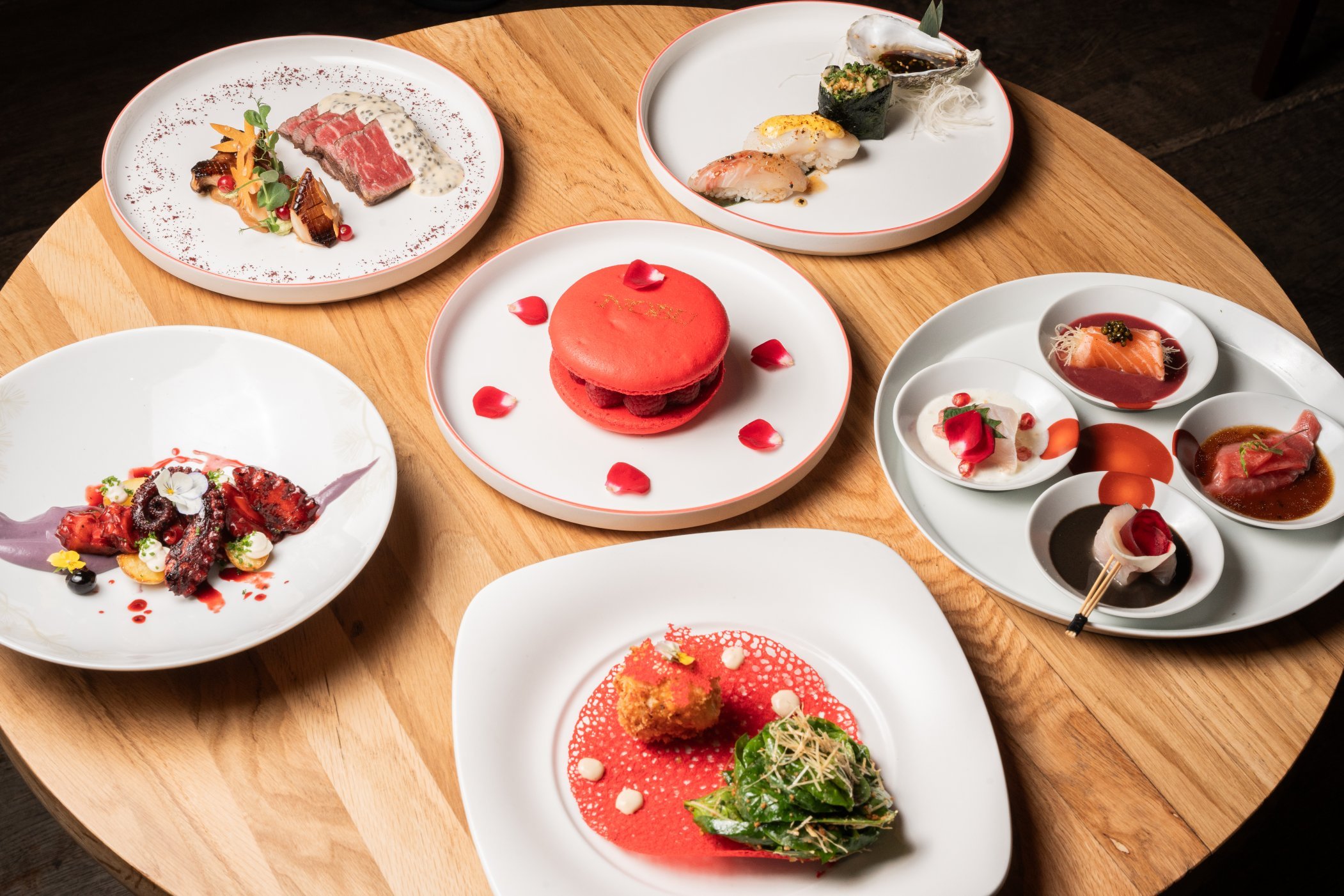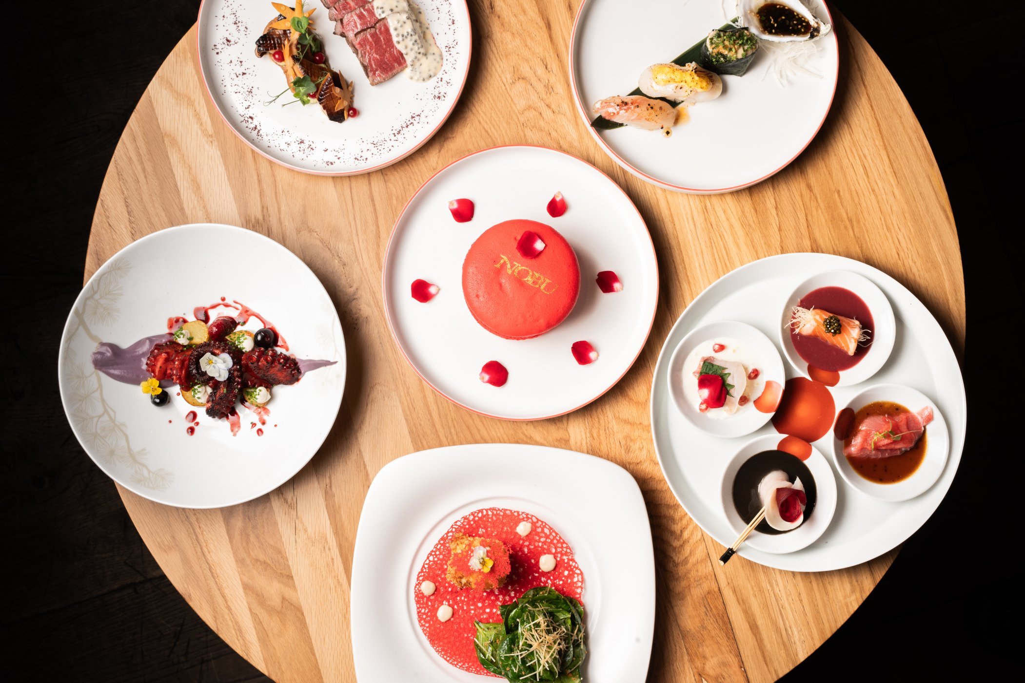 Reserve the hottest table in town this Valentine’s at Nobu Restaurant, alive with energy and an unmistakable sense of occasion. Enjoy six courses designed with romance in mind, including 4 Ways Sashimi with rose petals, pomegranate, and caviar; crispy crab cake tonkatsu; a signature sushi selection; grilled octopus with red fruits teriyaki; beef tenderloin with citrus sauce and caviar; and a La Rose macaron touched with gold.