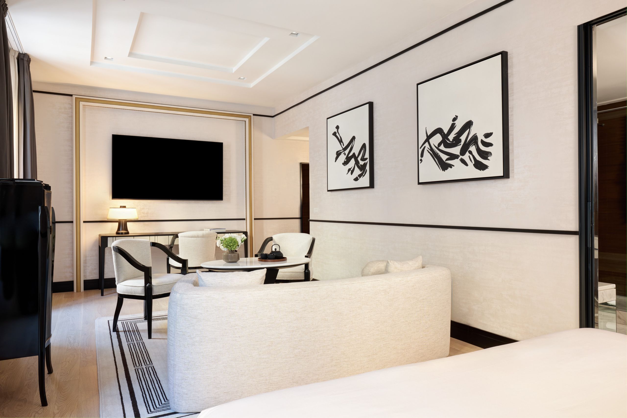 The Taiyo Suite offers a seamless blend of elegance and comfort, embodying Nobu’s refined sense of luxury with a contemporary edge. Bespoke furnishings and a spacious layout create a serene sophisticated ambiance. The grand Carrara marble bathroom features a deep-soaking tub and a separate rainfall shower . A perfect retreat for guests seeking a private space to unwind and recharge.